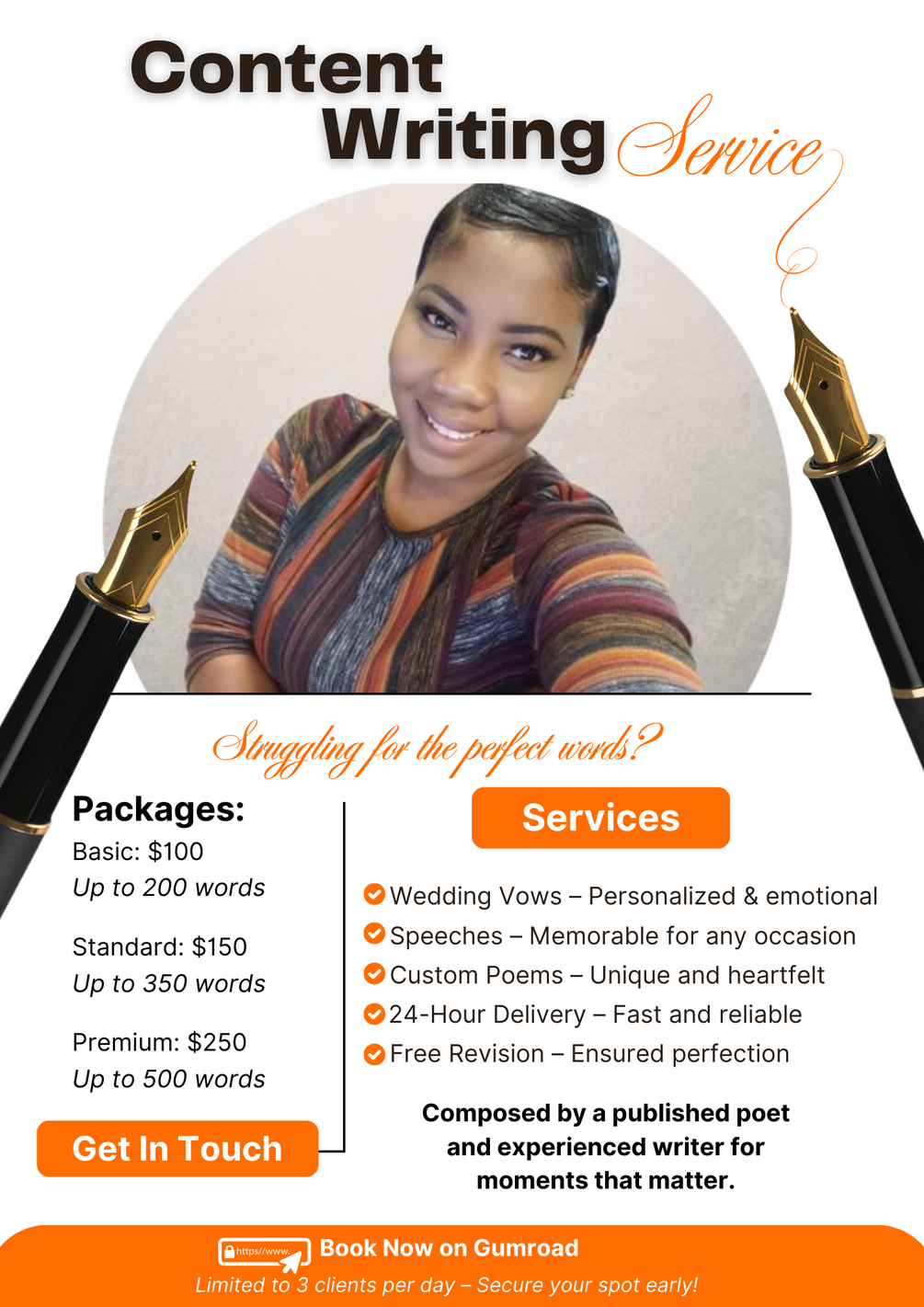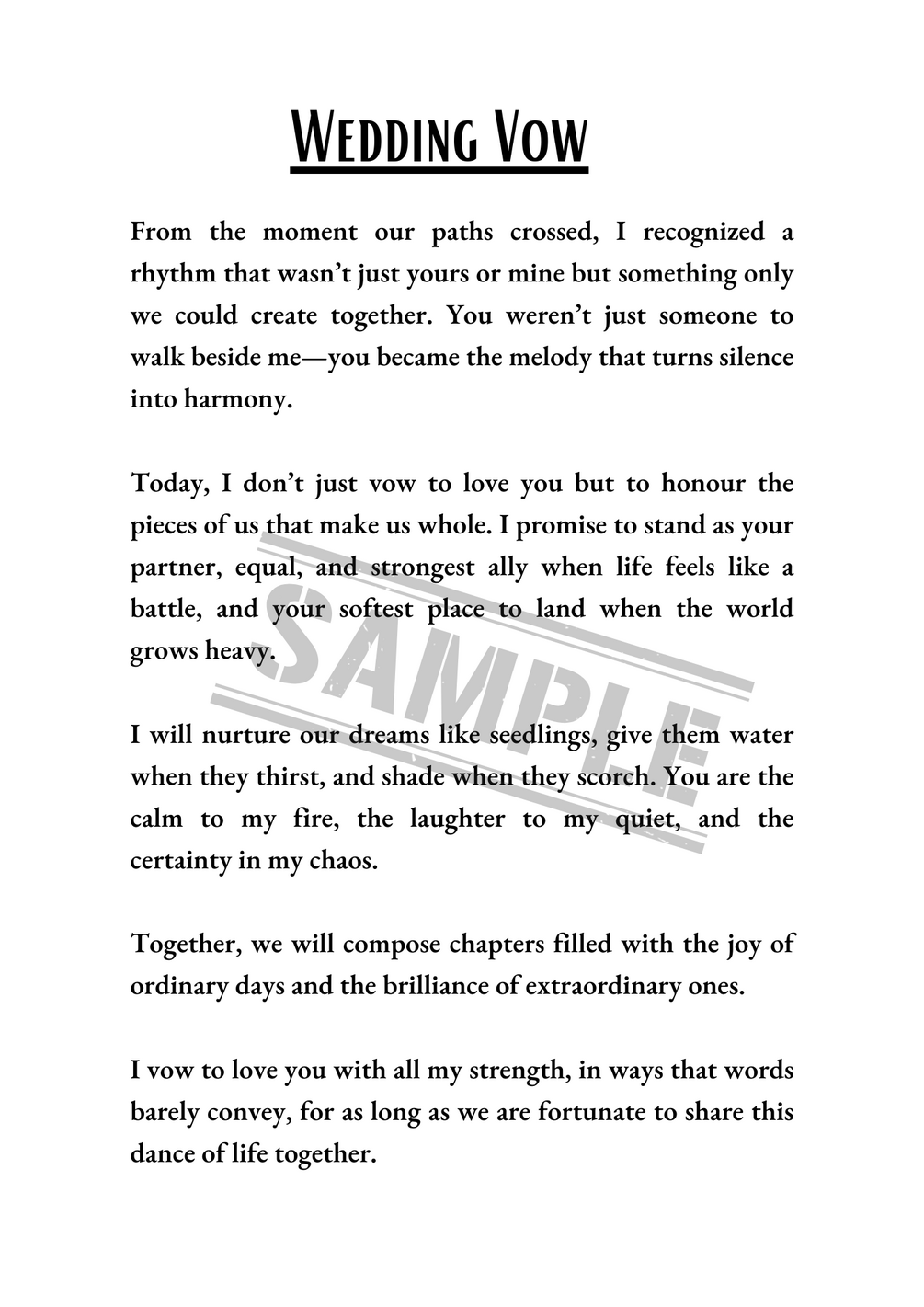 Finding the perfect words for your special moments can be challenging. Whether it’s wedding vows, a memorable speech, or a one-of-a-kind poem, I’m here to help.
